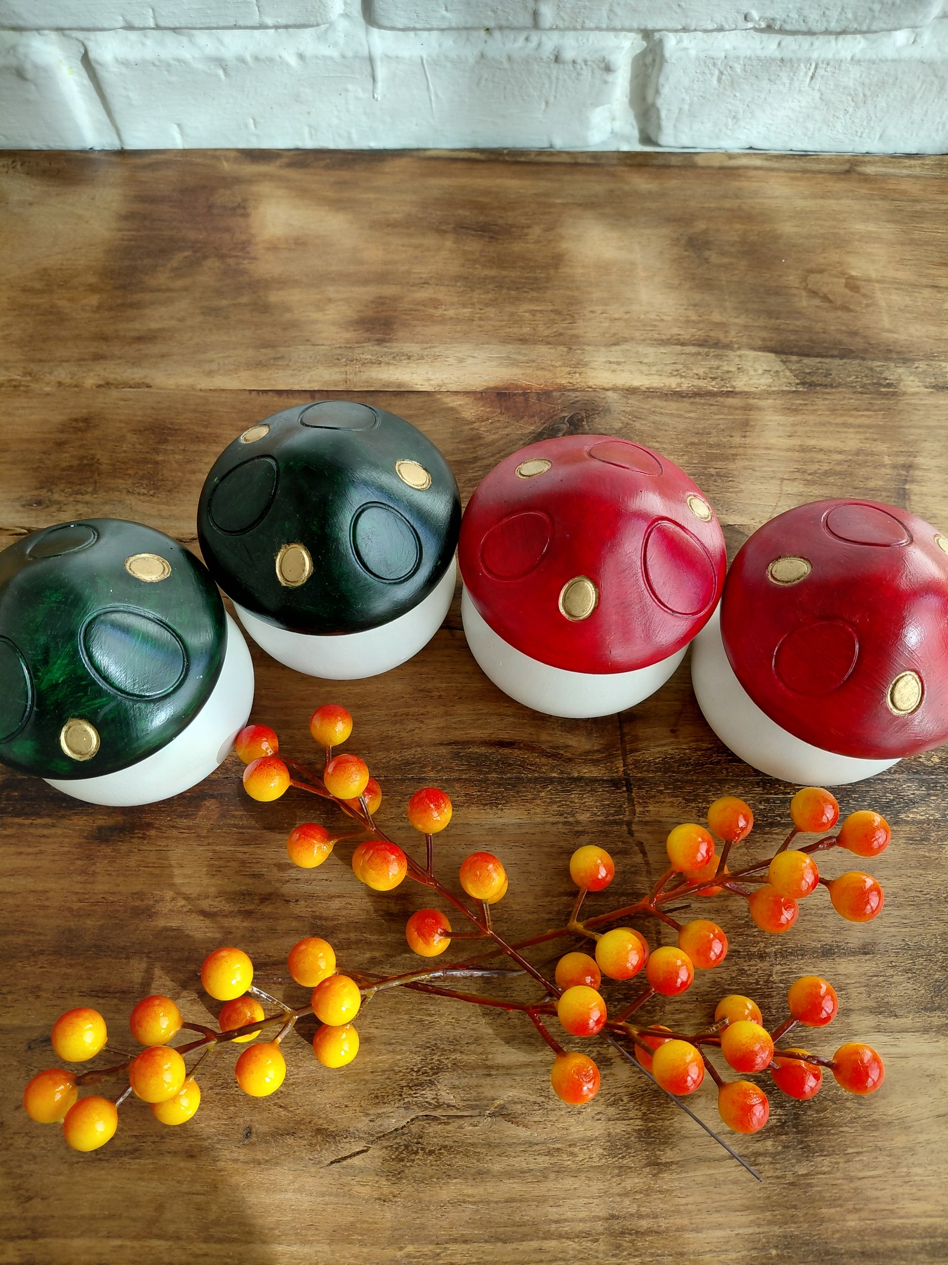 Seta elaborada con resina ecológica y pintada a mano. La vela es de cera Soja y aromas especiados.